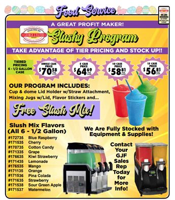 Home / Seasonal Products / Slush Slush Category: Seasonal Products Description Description Slush Related products Motor Oil 2-cycle Itasca 8oz Marshmallows Ess/Ev 10oz Hotdog Bar S Jumbo 1lb. Squeege 8” Head + Handle